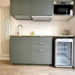 Ferielejlighed har et køkken til selvforplejning. Det vil tage 10 minutters gågang at nå til Aosta kabelbanestation.